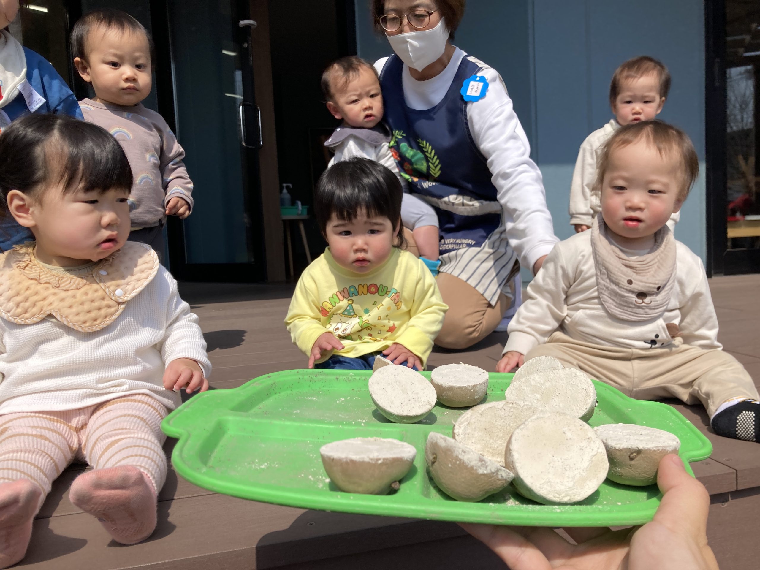 4月からはいよいよひよこ組さんになります。この1年で子ども達はたくさん成長した姿を見せてくれました。入園当初はいっぱい泣いていましたが、今ではすっかり大きくなって毎日元気に過ごしています。新しい環境にも慣れて元気いっぱいなたまご組さんです。